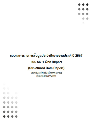 Structured Data Report รายงานประจำปี 56-1 One Report Structured Data Report รายงานประจำปี (56-2) แบบฟอร์ม 56-1 รายงานความยั่งยืน ดาวน์โหลดเอกสารนักลงทุนสัมพันธ์ Structured Data Report 2567 (วันที่เผยแพร่ : วันที่ 25/3/68) Structured Data Report 2566 (วันที่เผยแพร่ : วันที่ 25/3/67) Structured Data Report 2565 (วันที่เผยแพร่ : วันที่ 24/3/66) Structured Data Report 2564